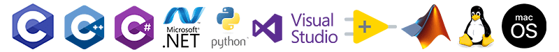 - Example projects for multiple environments: Visual Studio (C++, C#, VB), LabView
